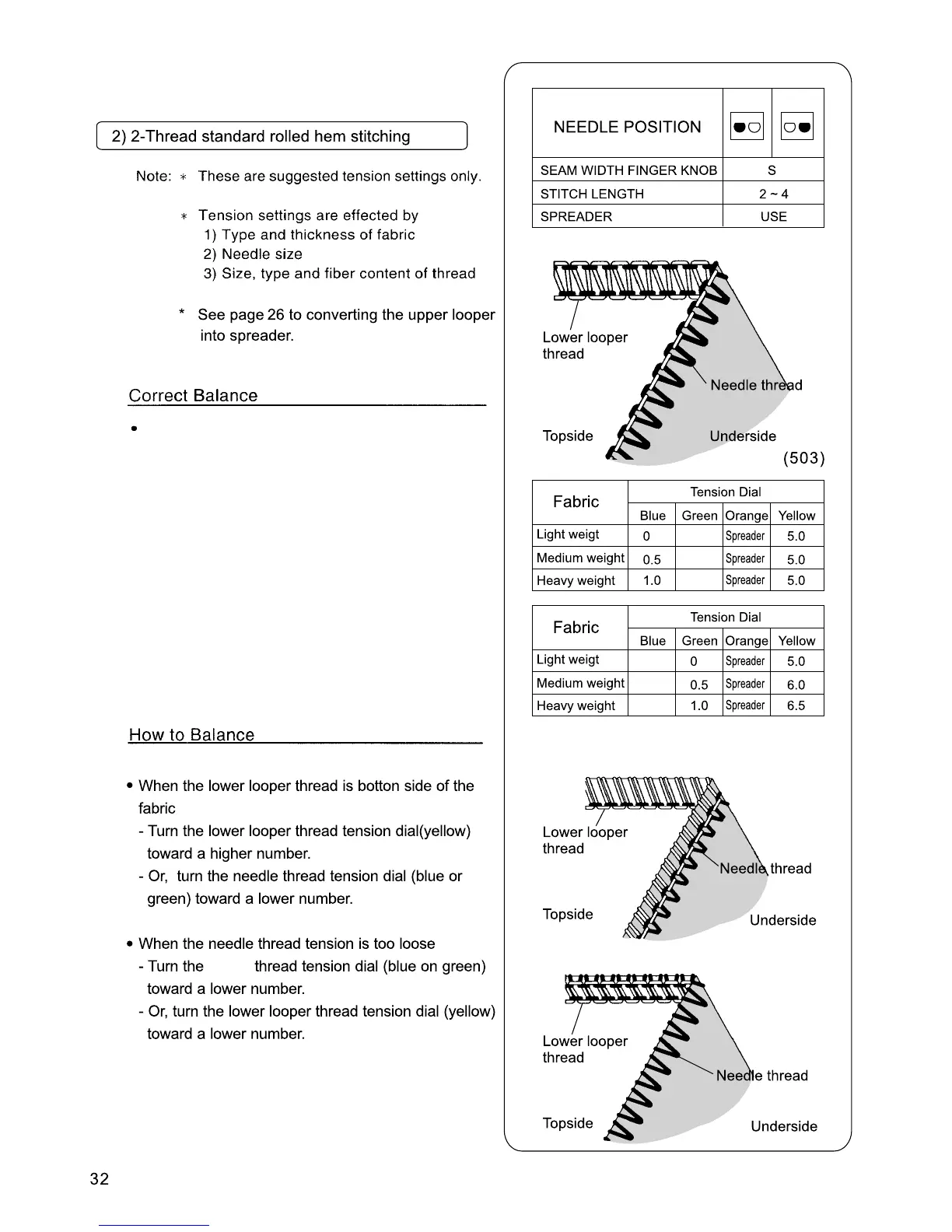 Set each tension dial to settings shown at right and