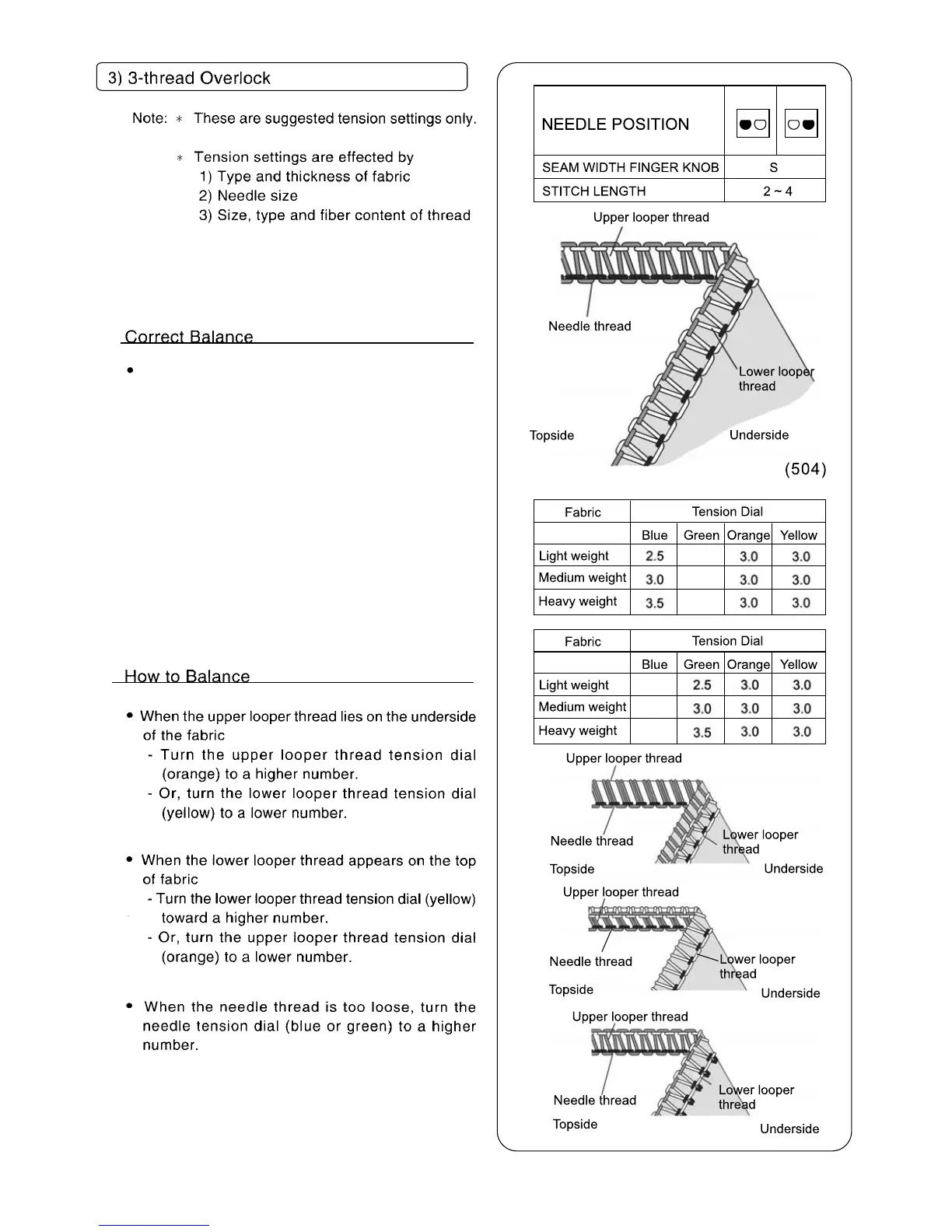 Set each tension dial to settings shown at right