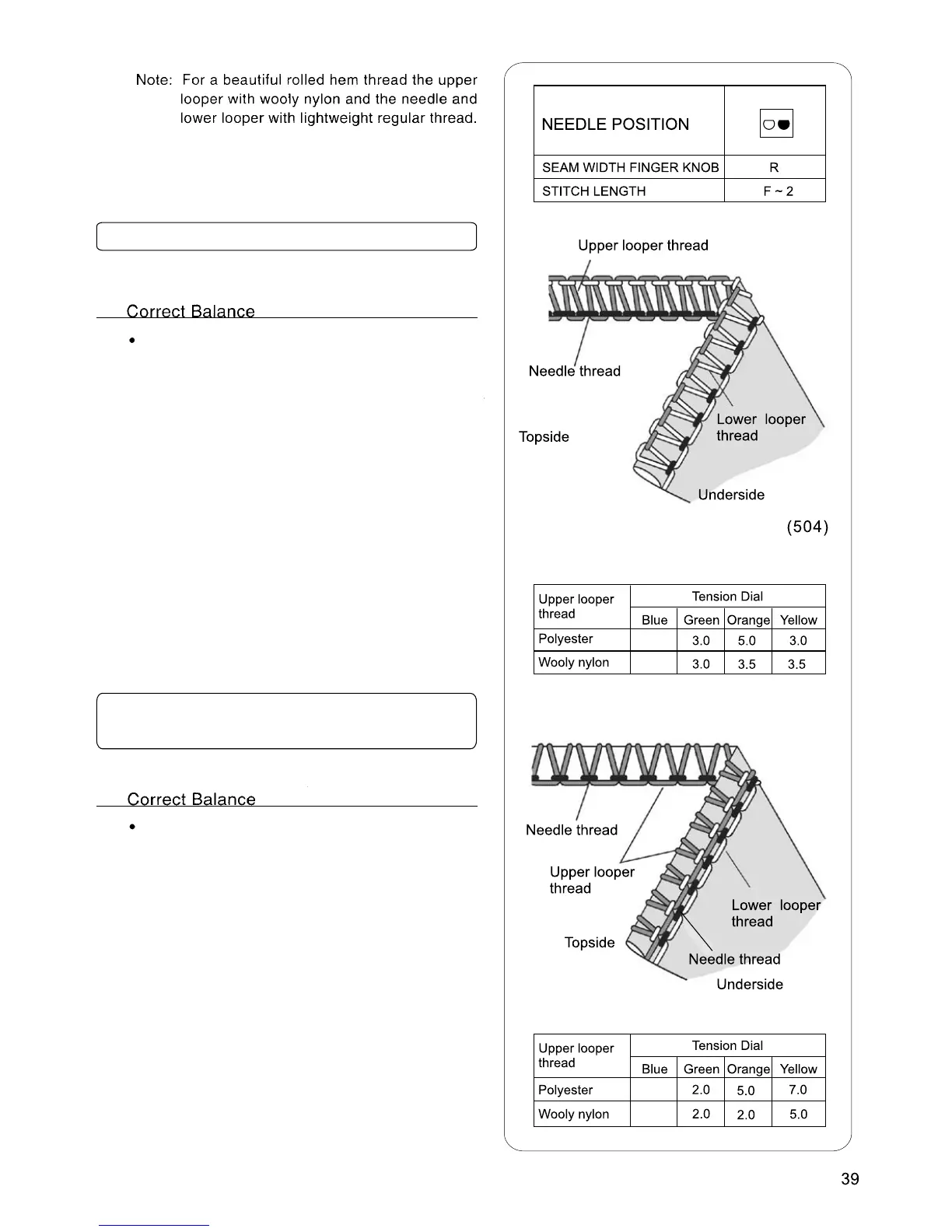 Set each tension dials to settings shown at right