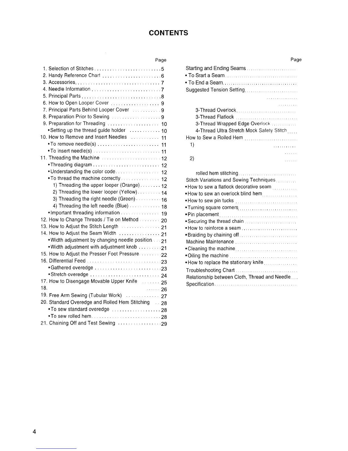 b. 2-thread standard rolled hem stitching