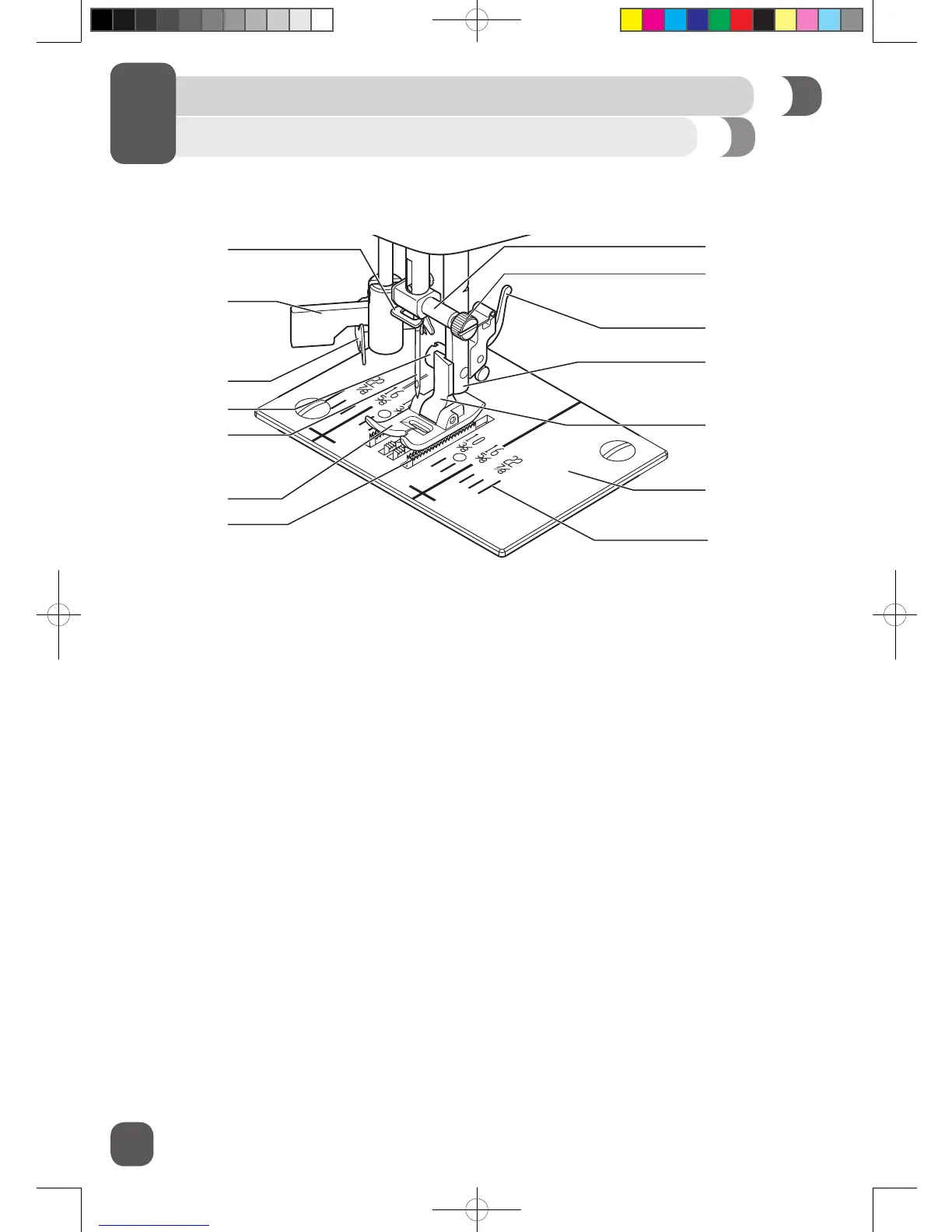 13. PLACA DE AGUJA cubre a área da bobina y proveé área plana alrededor del prensa tela. (ver