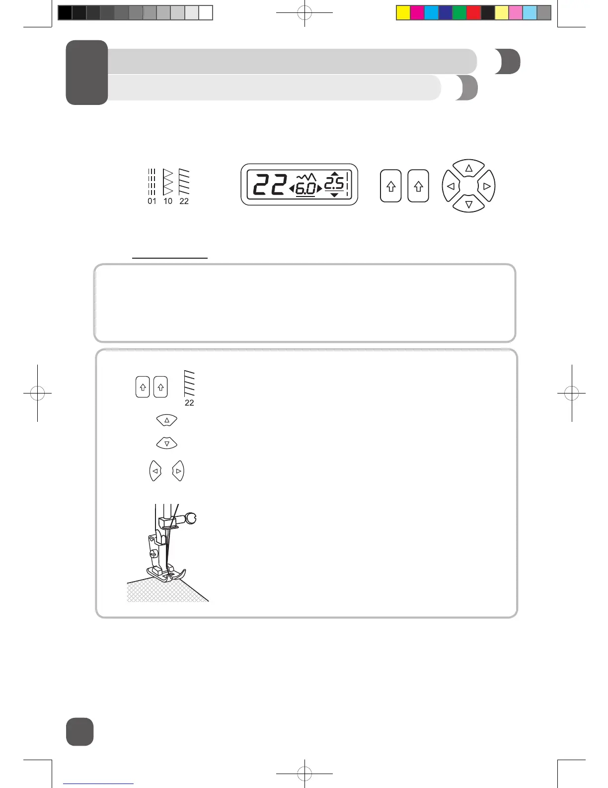 2. Ajuste la largura de puntada entre 0,3 y 4,5. (ver página 19)
