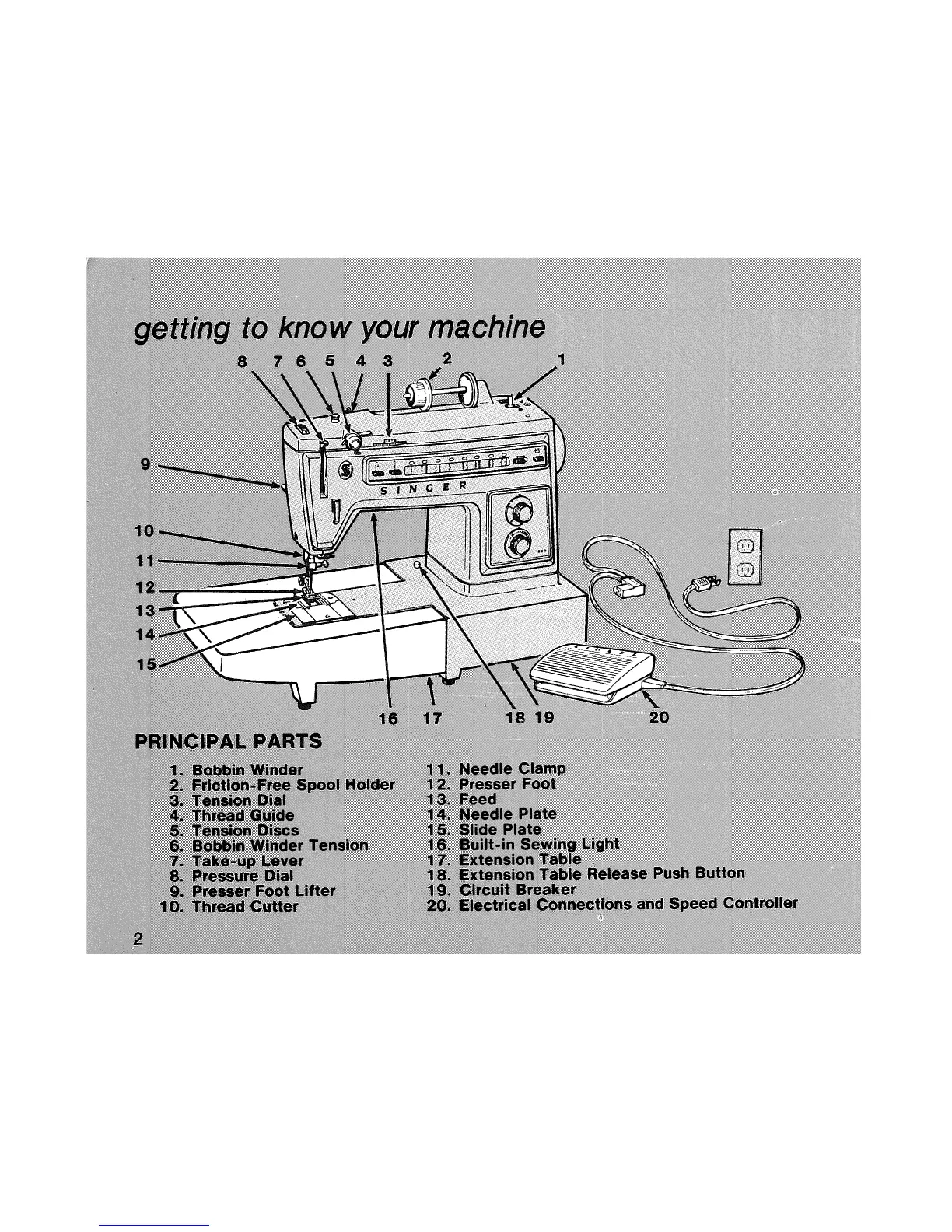 Singer 560 - Getting to Know Your Machine; Principal Parts