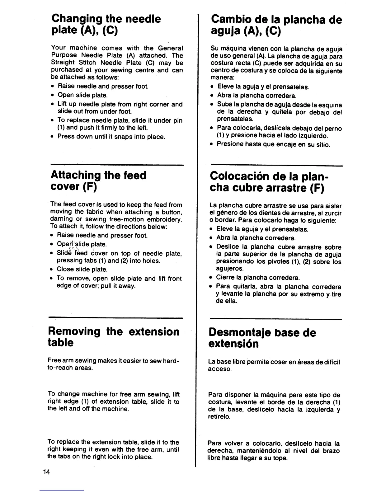 Singer 5705 - Changing the Needle Plate; Attaching the Feed Cover; Removing the Extension Table