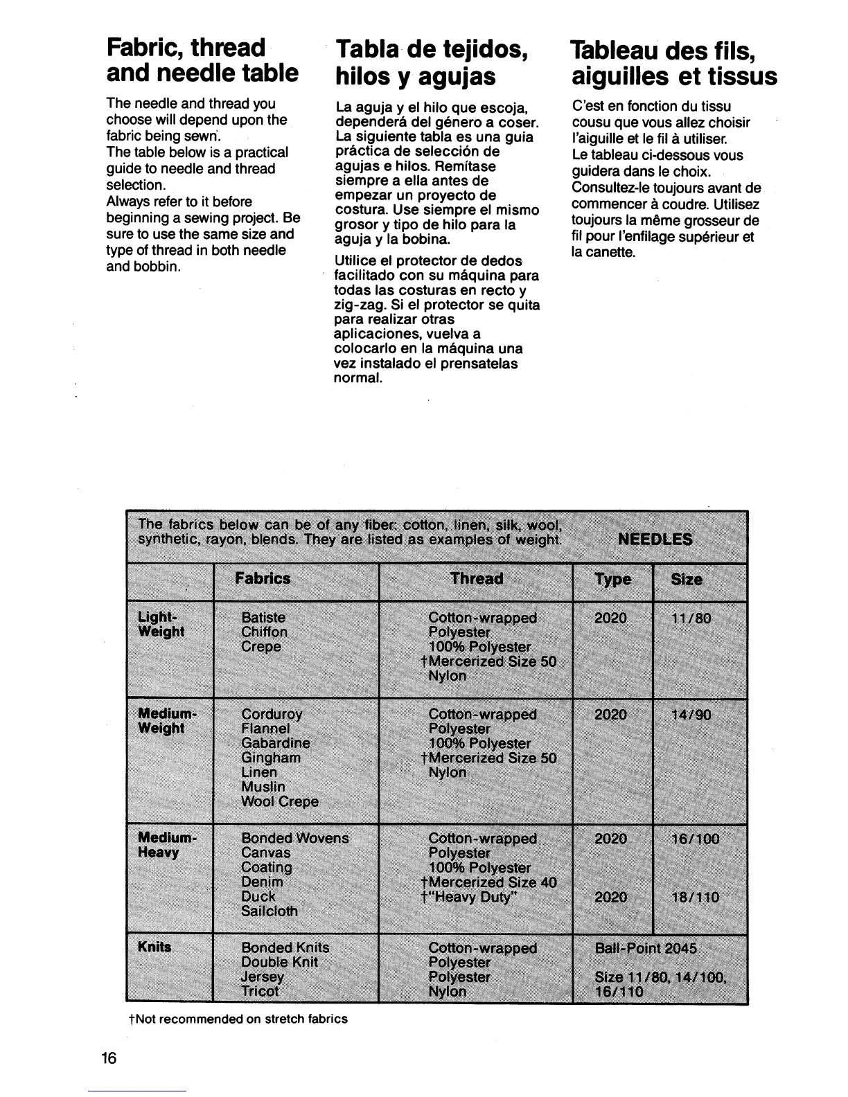 Singer 5705 - Fabric, Thread and Needle Table