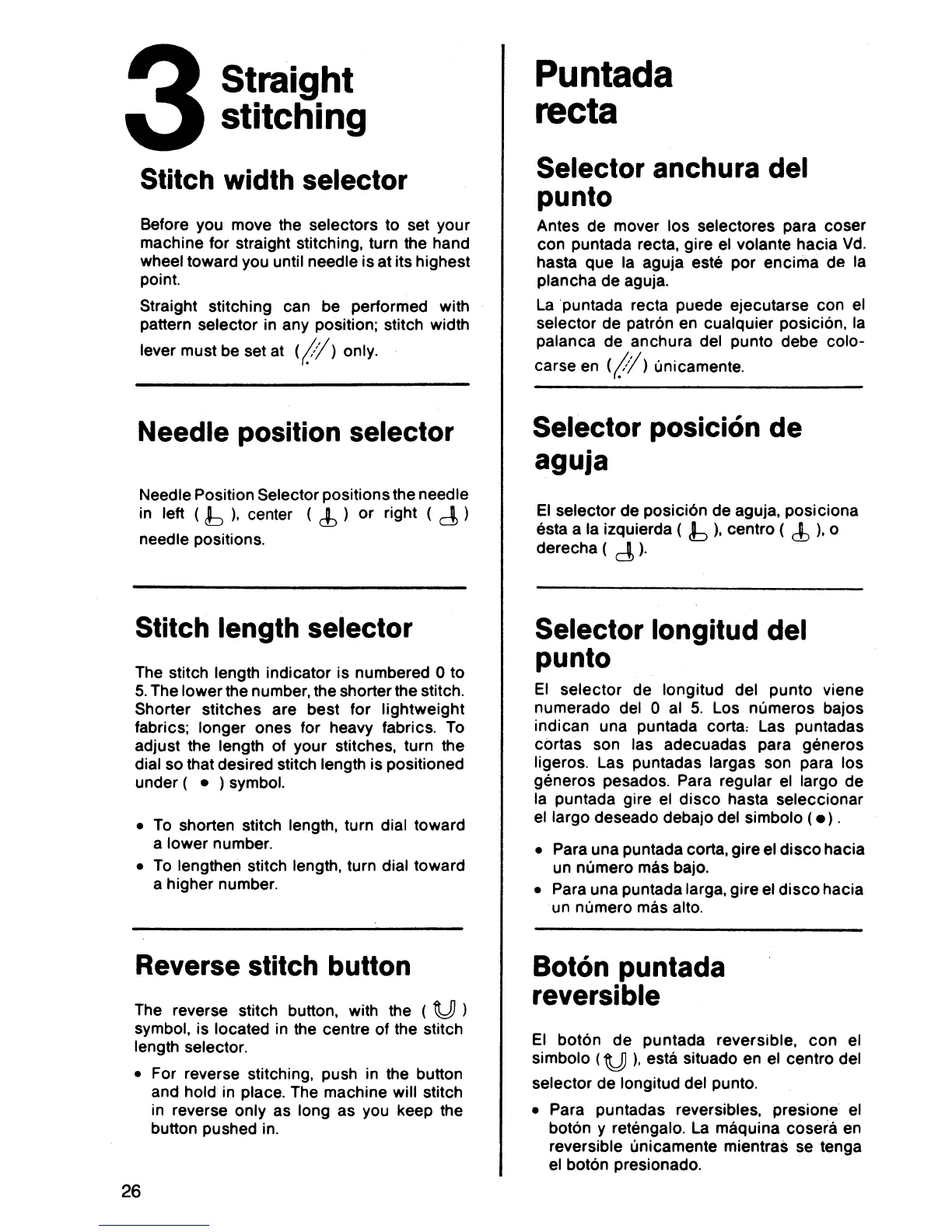 Singer 5705 - Straight Stitching; Stitch Width Selector; Needle Position Selector; Stitch Length Selector