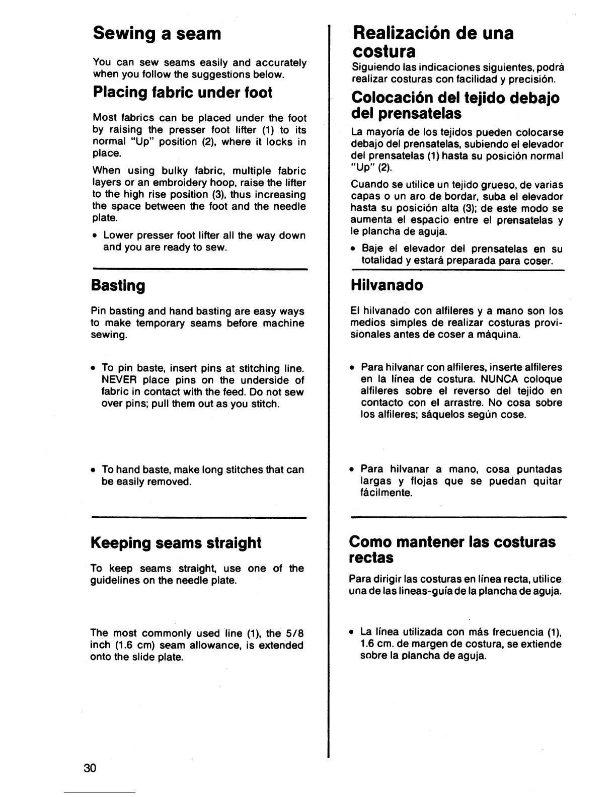 Singer 5705 - Sewing a Seam; Placing Fabric under Foot; Basting; Keeping Seams Straight