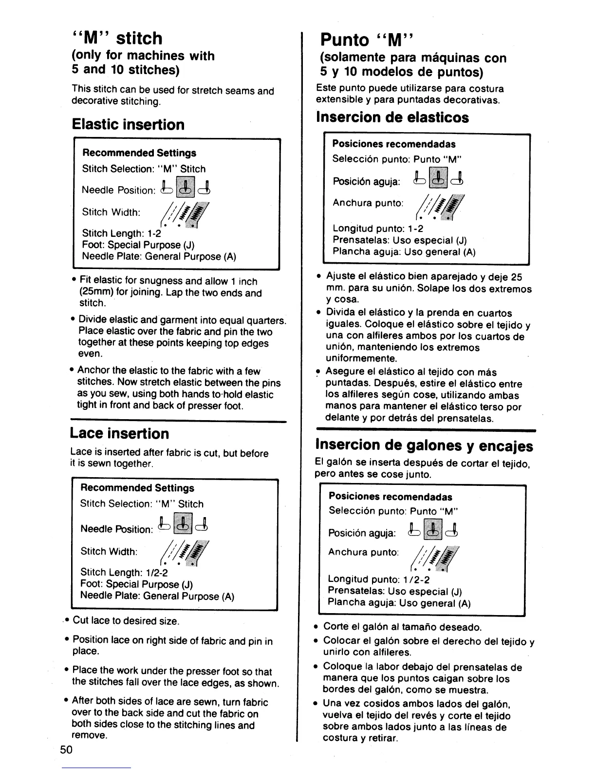 Singer 5705 - M Stitch; Elastic Insertion; Lace Insertion