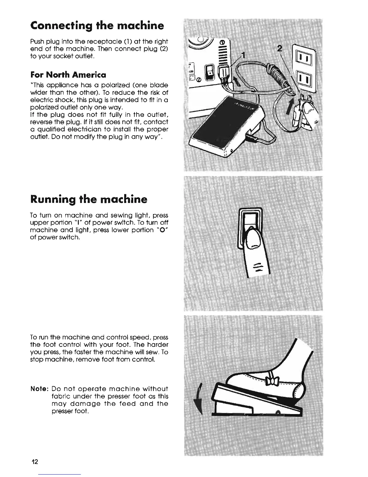 Singer 5830 - Connecting the Machine; Running the Machine