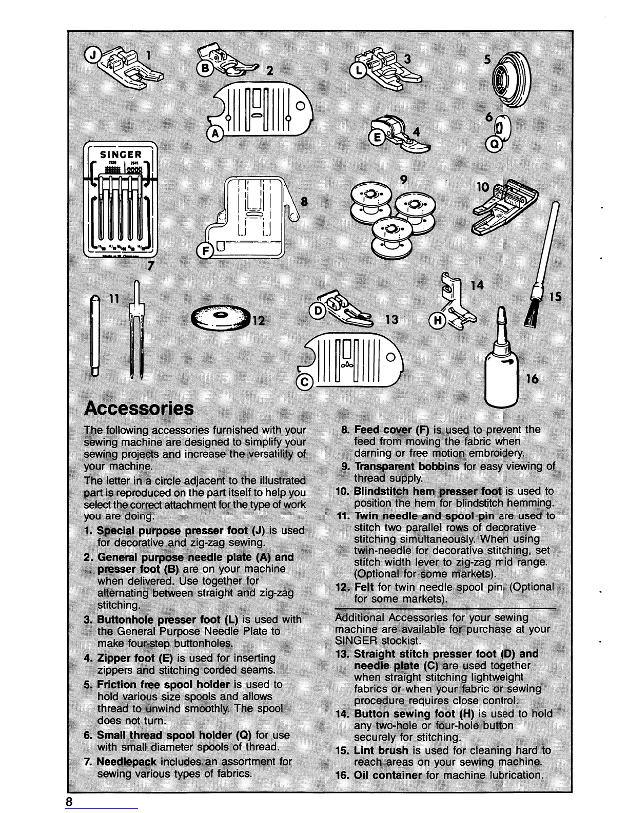 Singer 5838 - Accessories