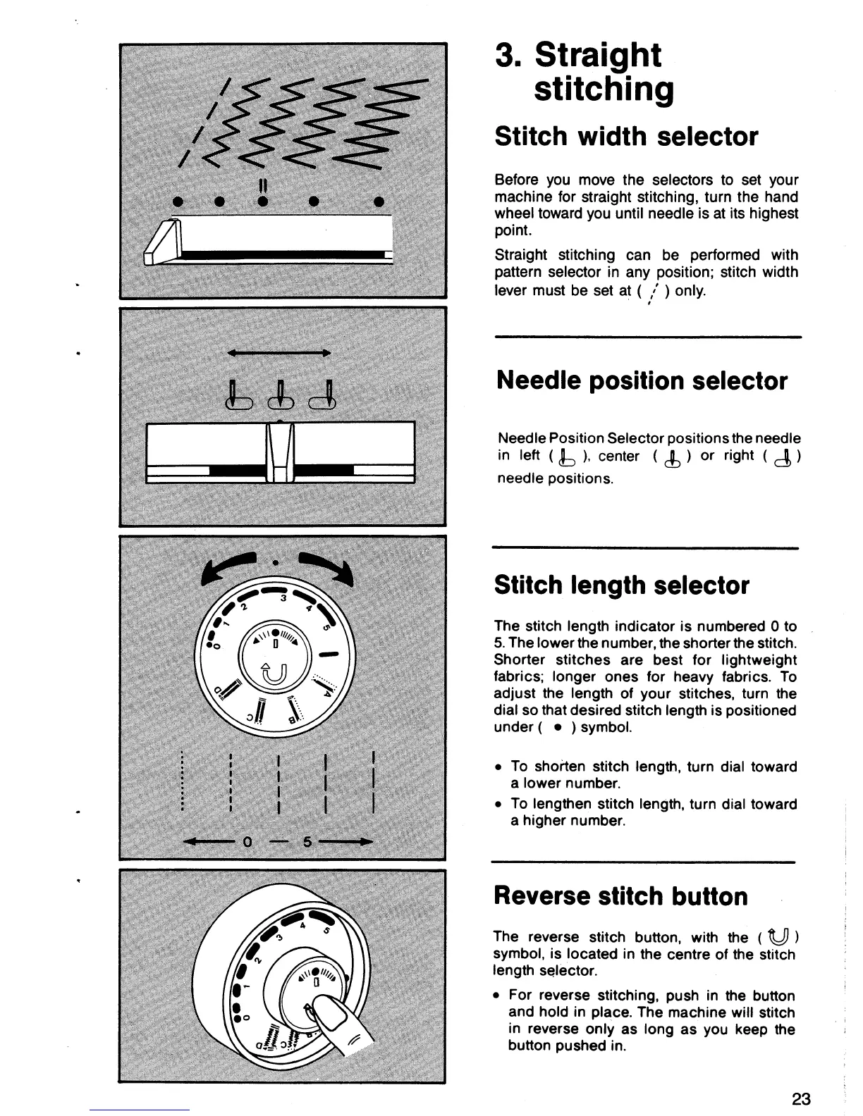 Singer 5838 - Straight Stitching; Stitch Width Selector; Needle Position Selector; Reverse Stitch Button