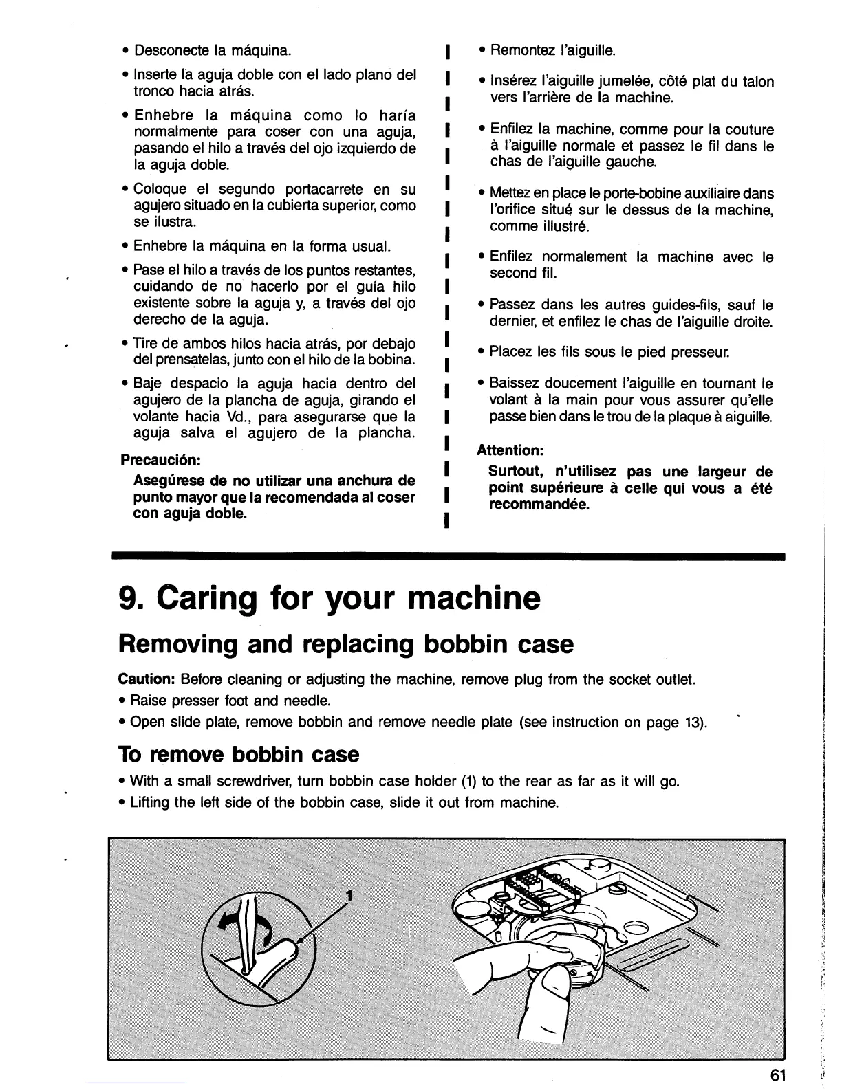 Singer 5838 - Caring for Your Machine; Removing and Replacing Bobbin Case; To Remove Bobbin Case