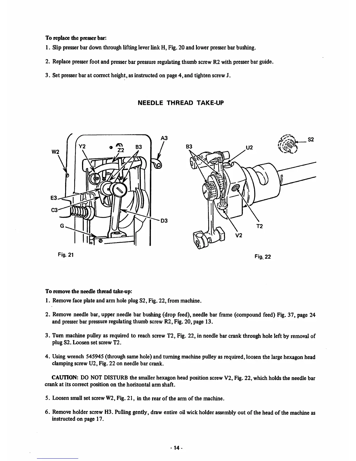 and presserbar pressureregulatingthumb screw R2, Fig. 20, page 13.