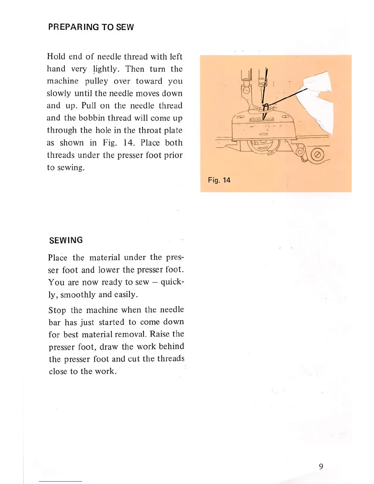 presser foot, draw the work behind