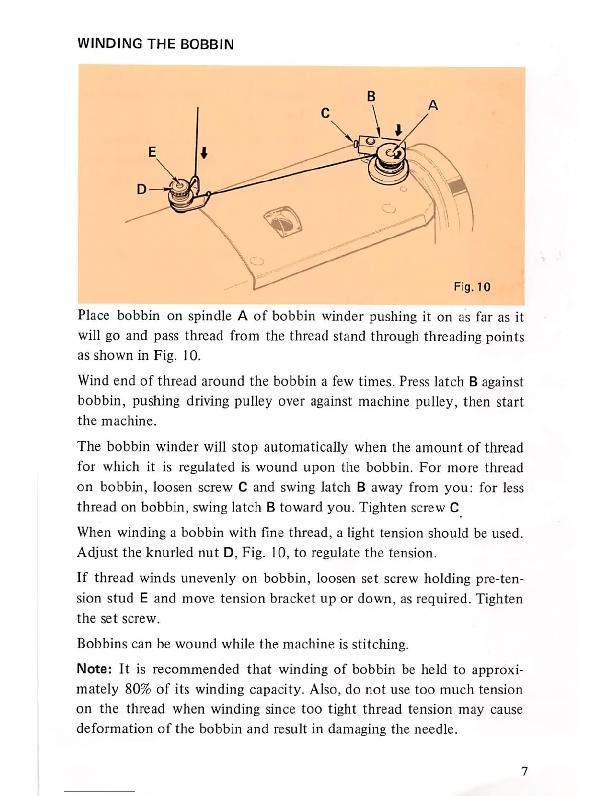 winds unevenly on bobbin, loosen set screw holding pre-ten-
