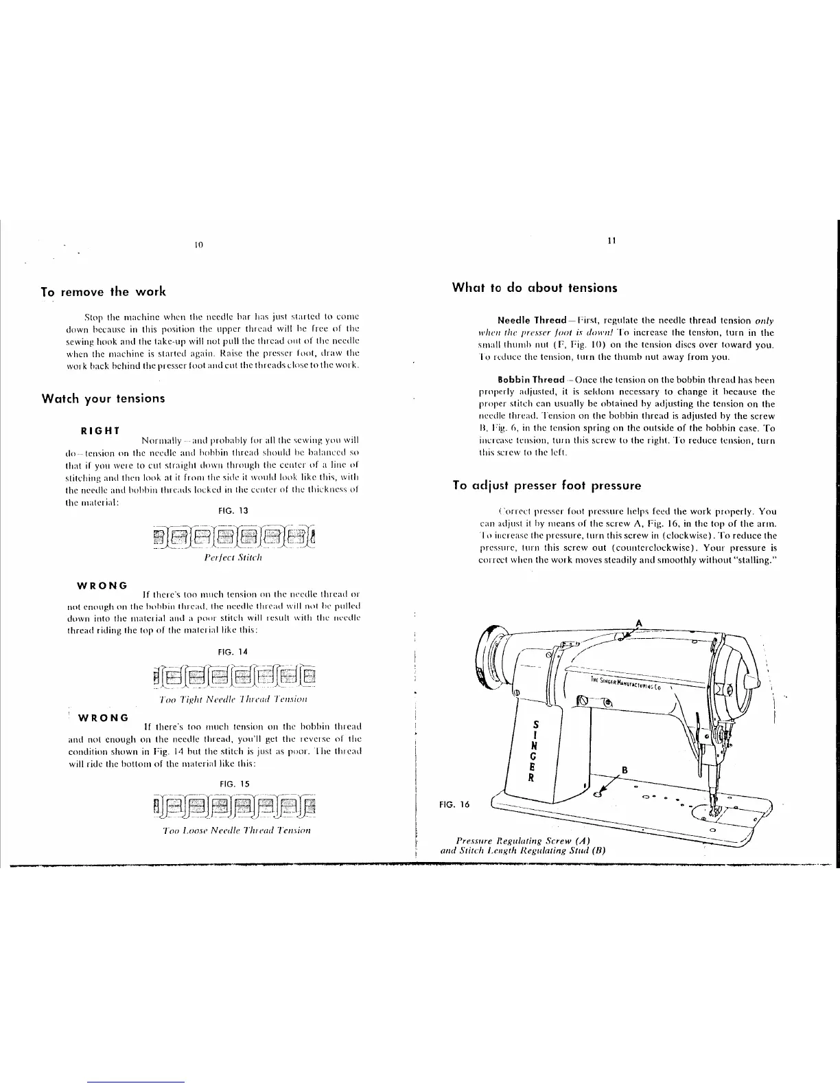 Singer 600W1 - Sewing Operations and Adjustments; Removing Work and Tension Adjustments; Adjusting Presser Foot and Stitch Length