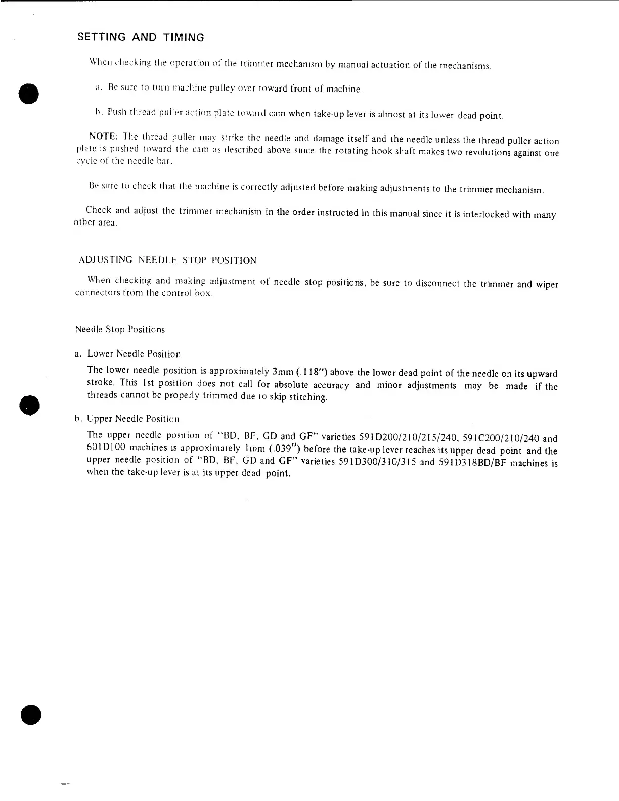 Singer 601 - Machines with U.T.T., Wiper and Back Tack; Cords and Connections Setup; Sewing Speed Specifications; Foot Treadle Operation