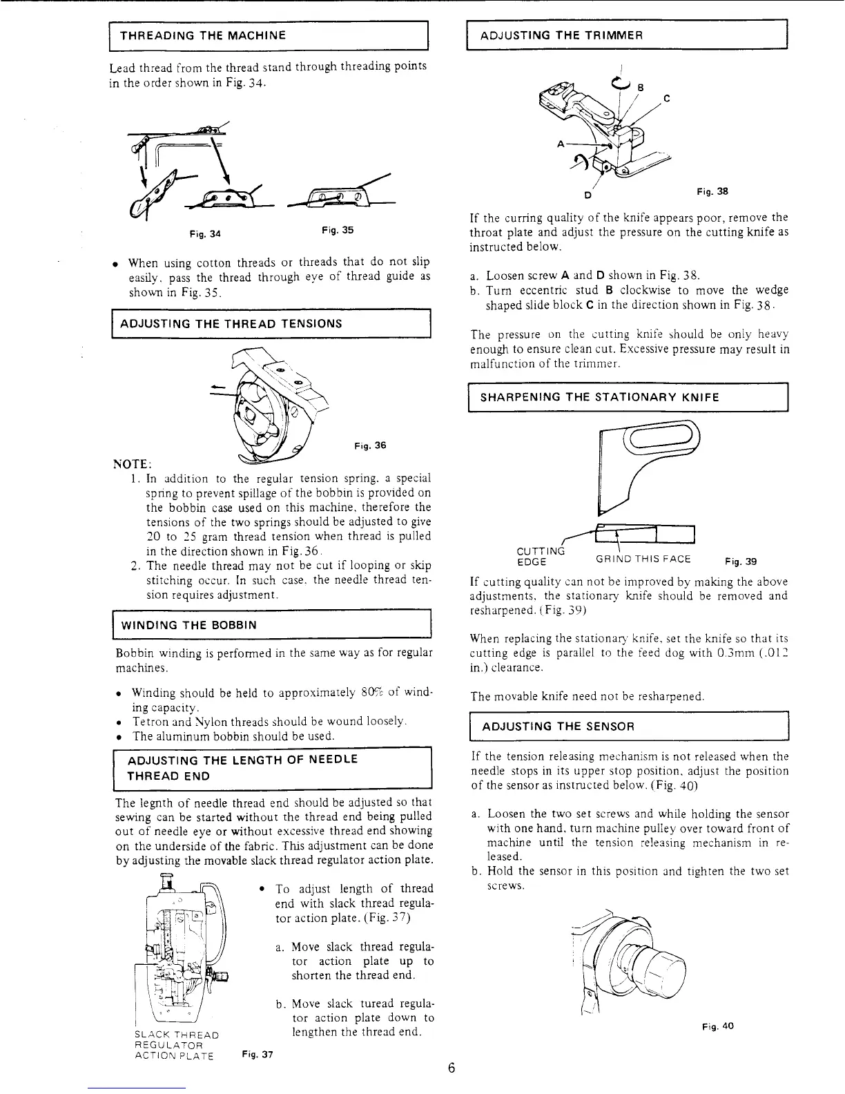 Singer 601 - Trimmer Adjustments and Thread Control; Adjusting the Trimmer Knife; Sharpening the Stationary Knife; Adjusting Thread Tensions