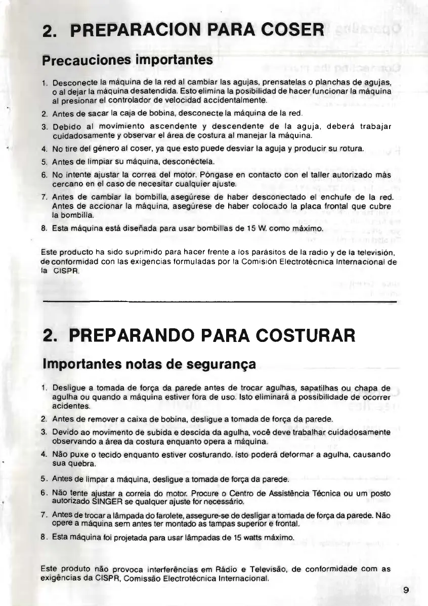 8. Esta máquina foi projetada para usar lâmpadas de 15watts máximo.