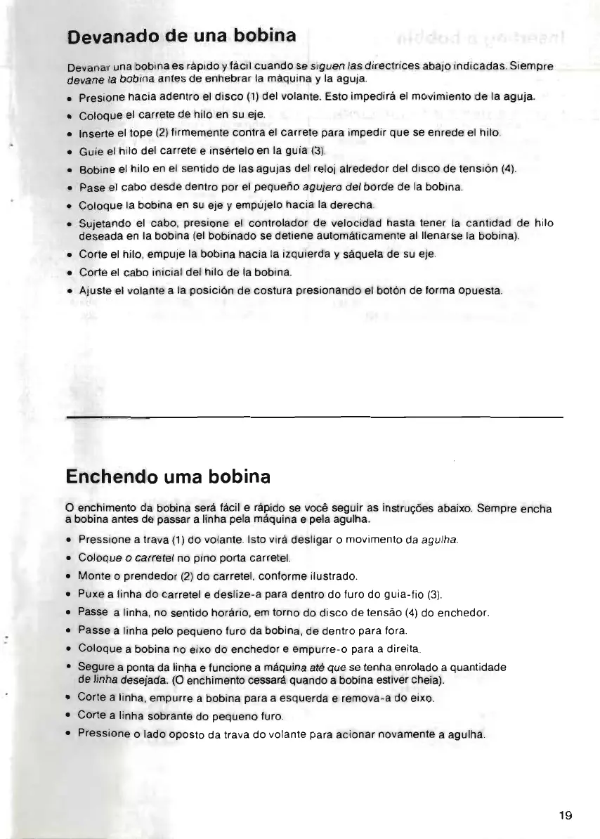 • Segure a ponta da linha e funcione a máquina até que se tenha enrolado a quantidade
