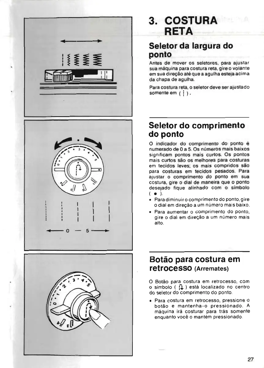 Para costura reta, o seletor deve ser