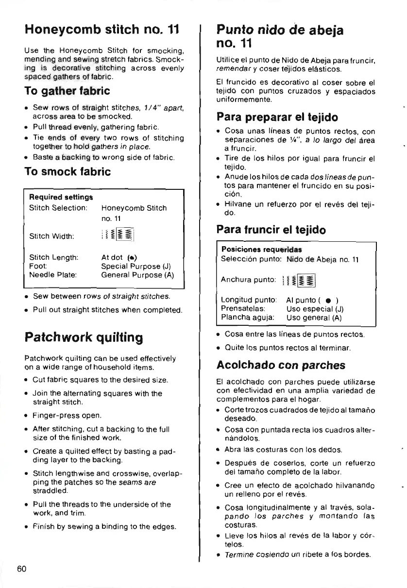 Singer 6021 - Honeycomb stitch no. 11; To gather fabric; To smock fabric; Required settings