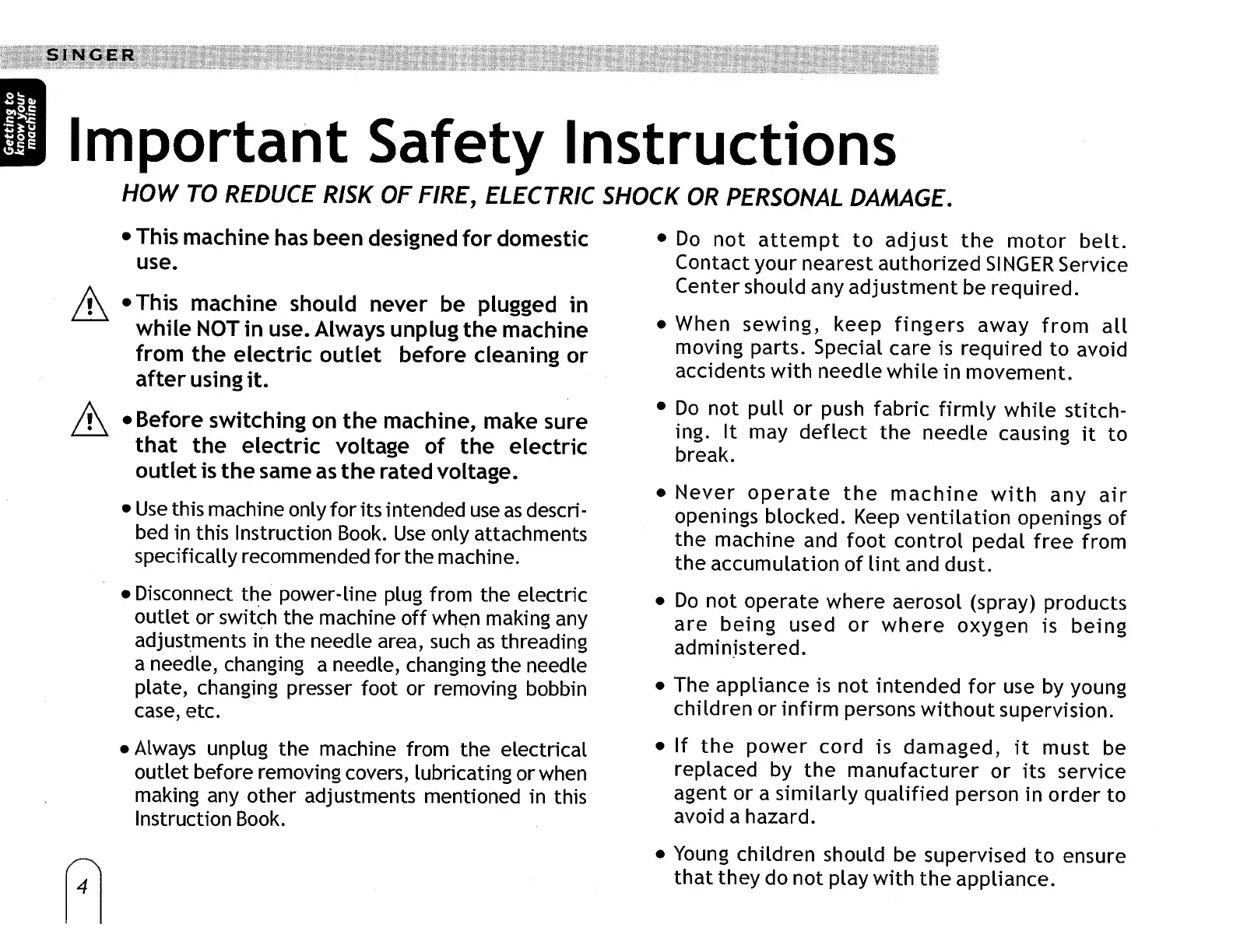 Singer 6038 - Important Safety Instructions