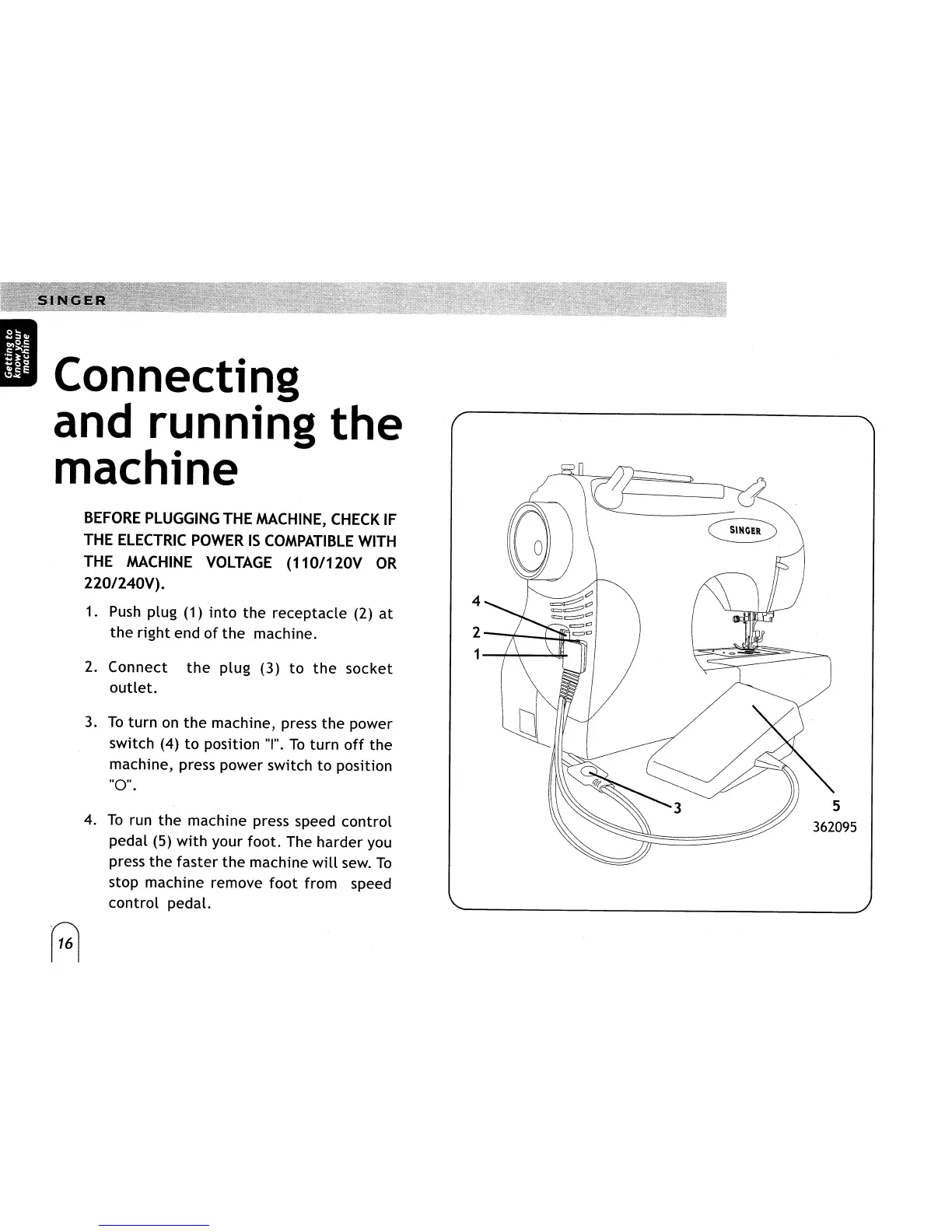 Singer 6038 - Connecting and running the machine; Before plugging the machine