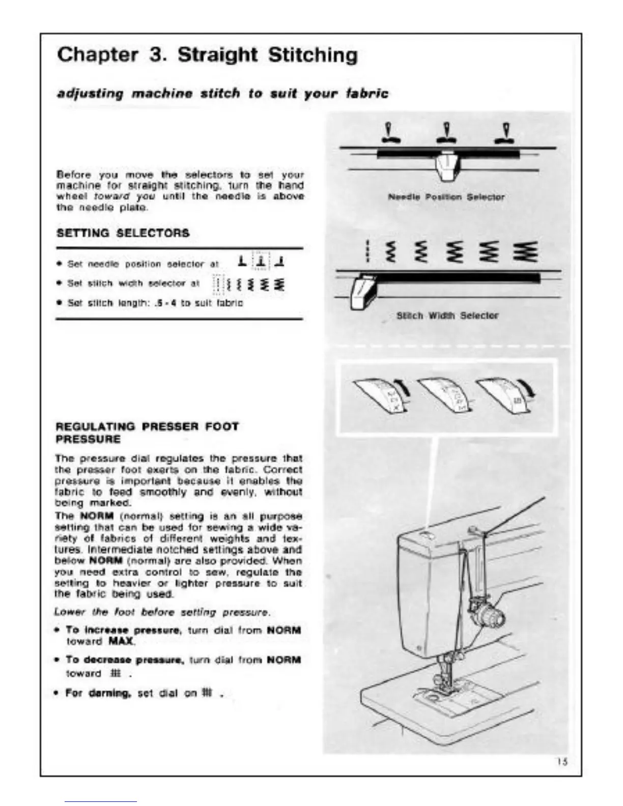 Singer 6105 - Chapter 3. Straight Stitching; Adjusting Machine Stitch to Suit Your Fabric; Regulating Presser Foot Pressure