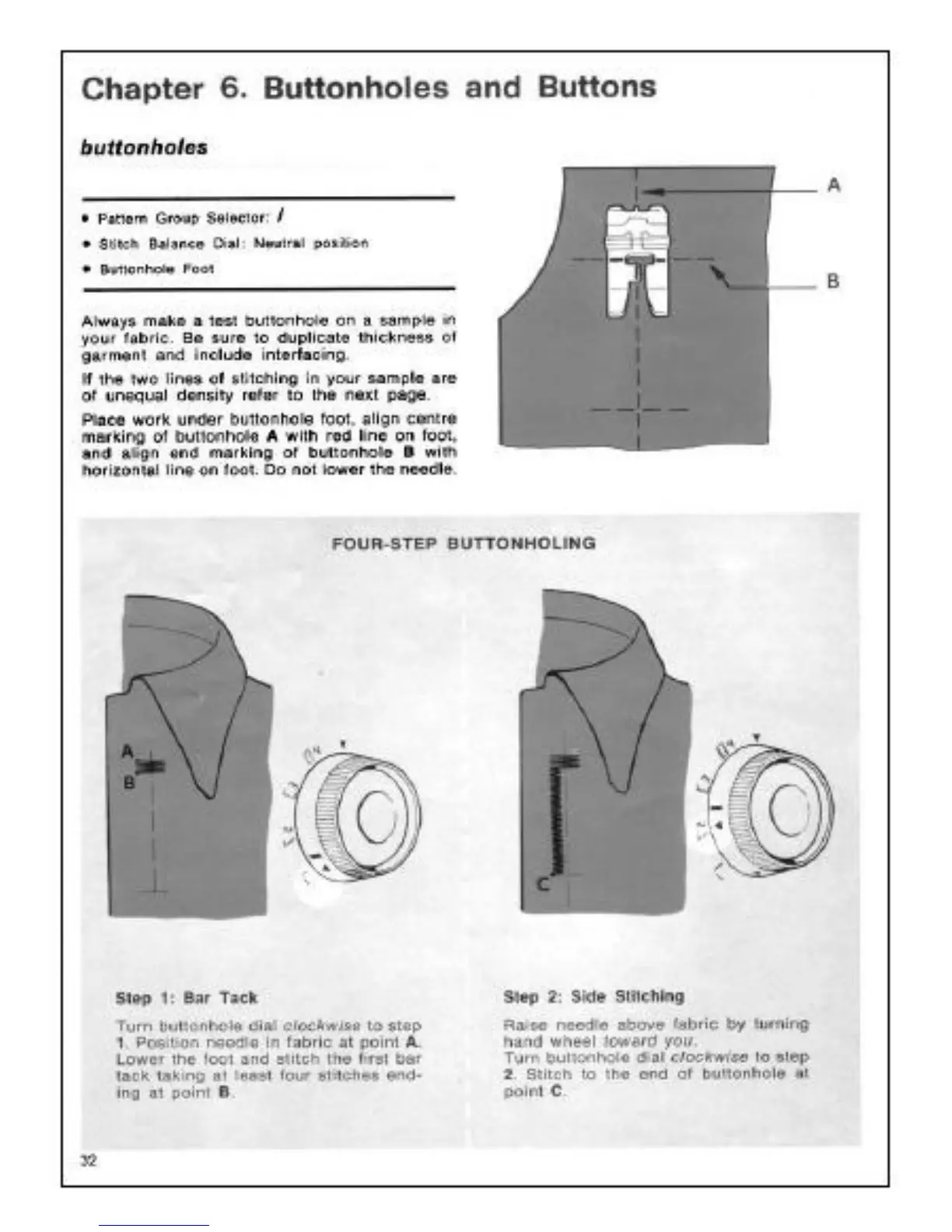 Singer 6105 - Chapter 6. Buttonholes and Buttons; Buttonholes
