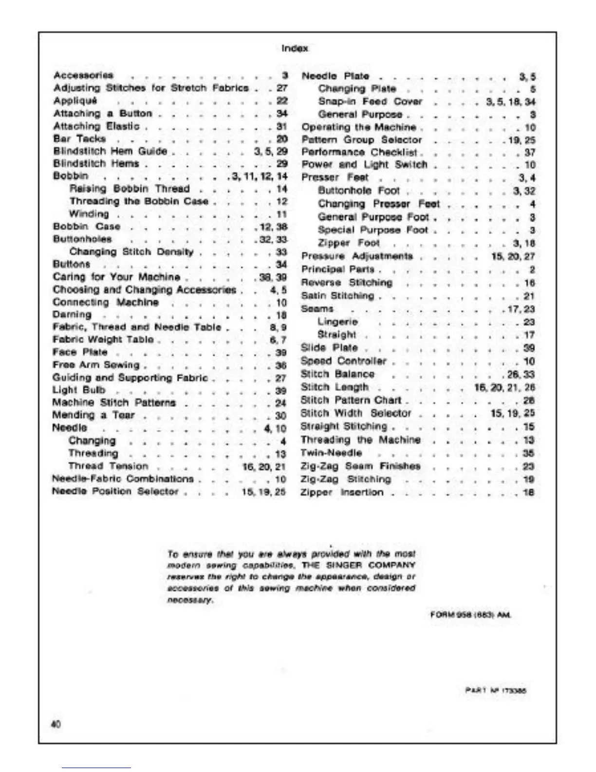 Singer 6105 - Index