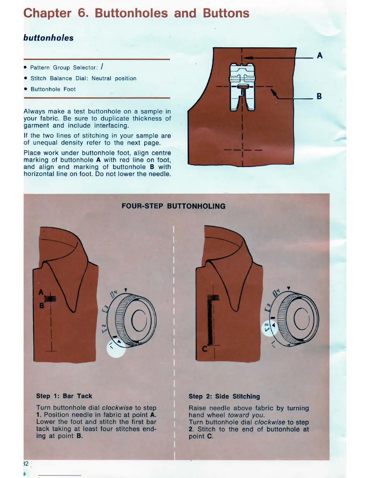 Singer 6136 - Chapter 6. Buttonholes and Buttons; buttonholes