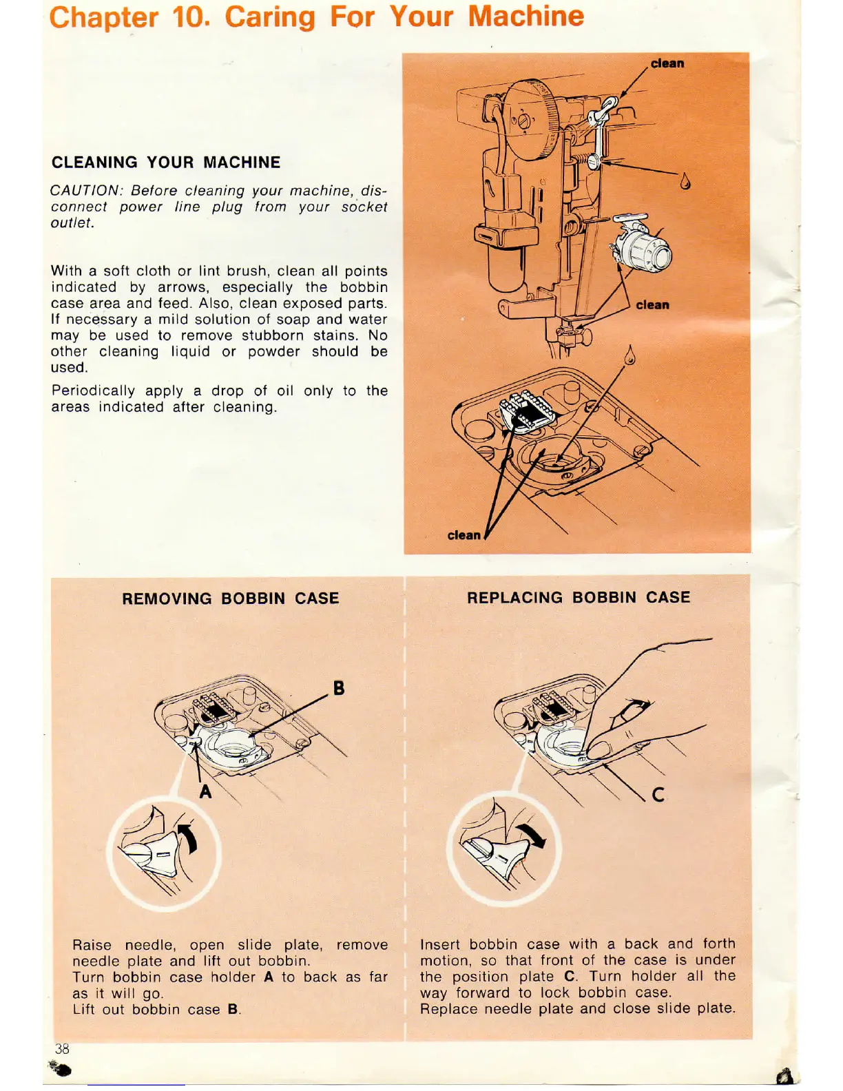 Singer 6136 - Chapter 10. Caring For Your Machine; CLEANING YOUR MACHINE; REMOVING BOBBIN CASE; REPLACING BOBBIN CASE