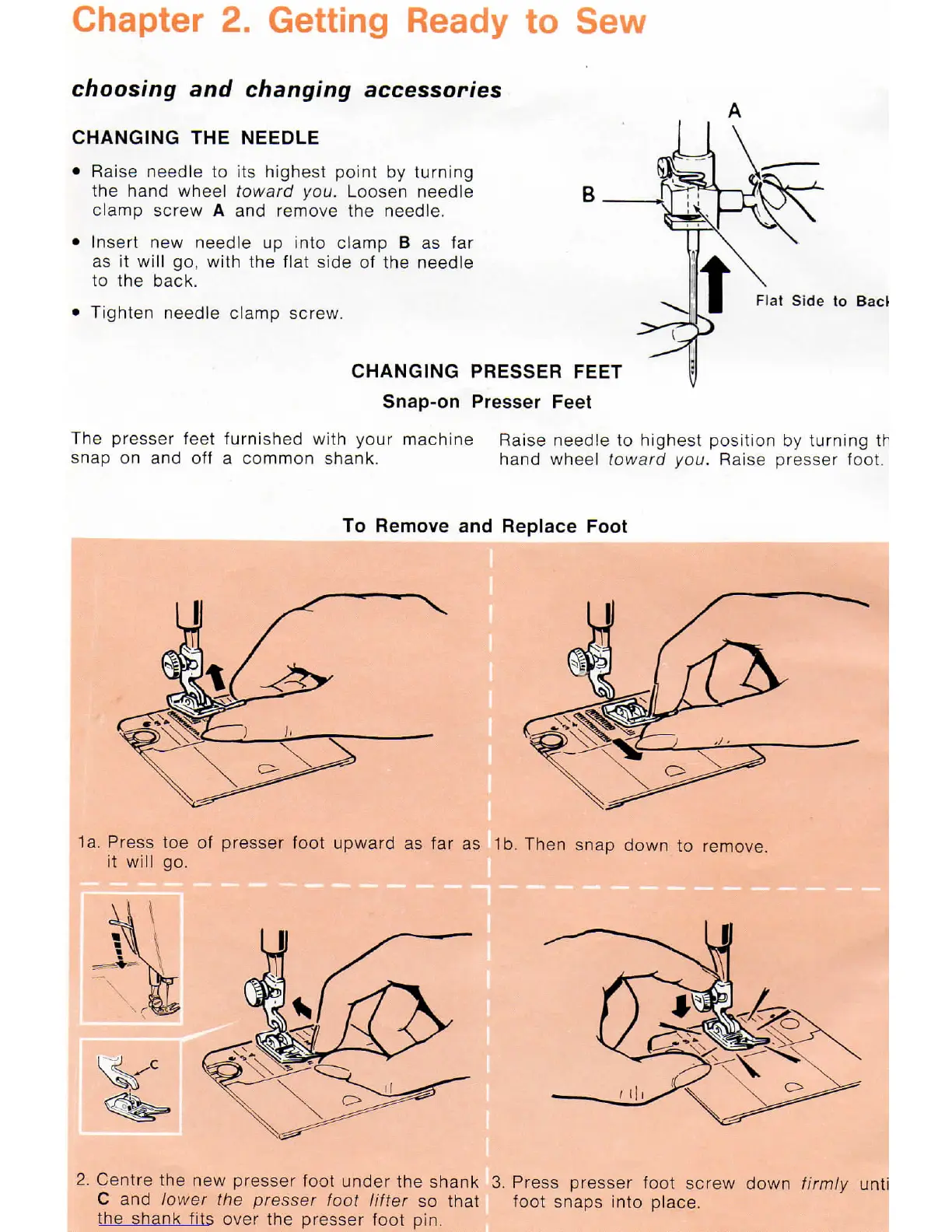 Singer 6136 - Chapter 2. Getting Ready to Sew; choosing and changing accessories; CHANGING THE NEEDLE; CHANGING PRESSER FEET