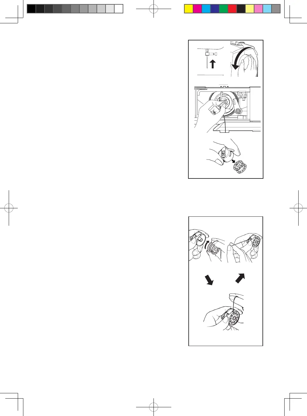 2. Insert the bobbin into the case with about 4” (10 cm) of