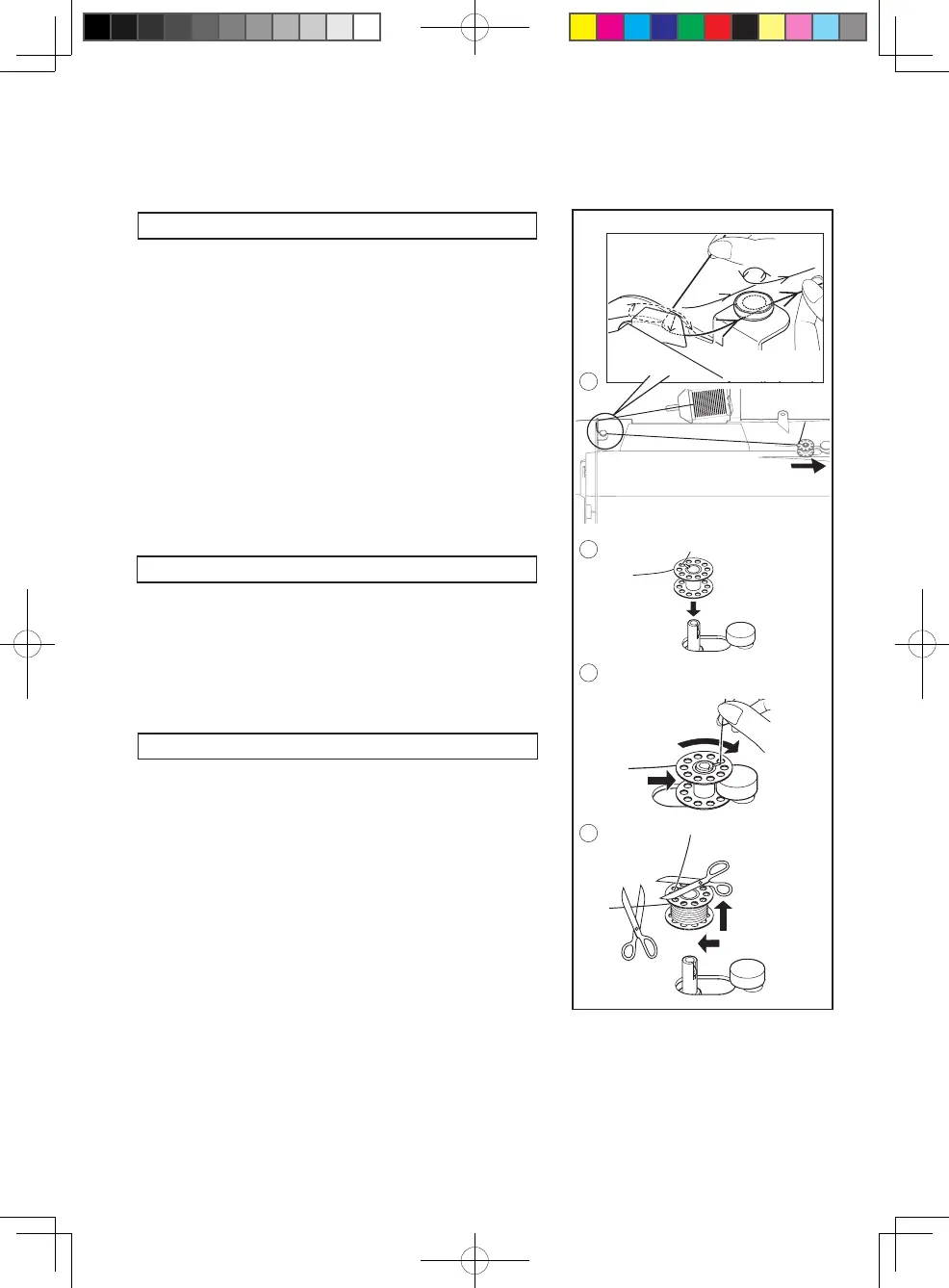 2.Put end of thread through the hole in bobbin as