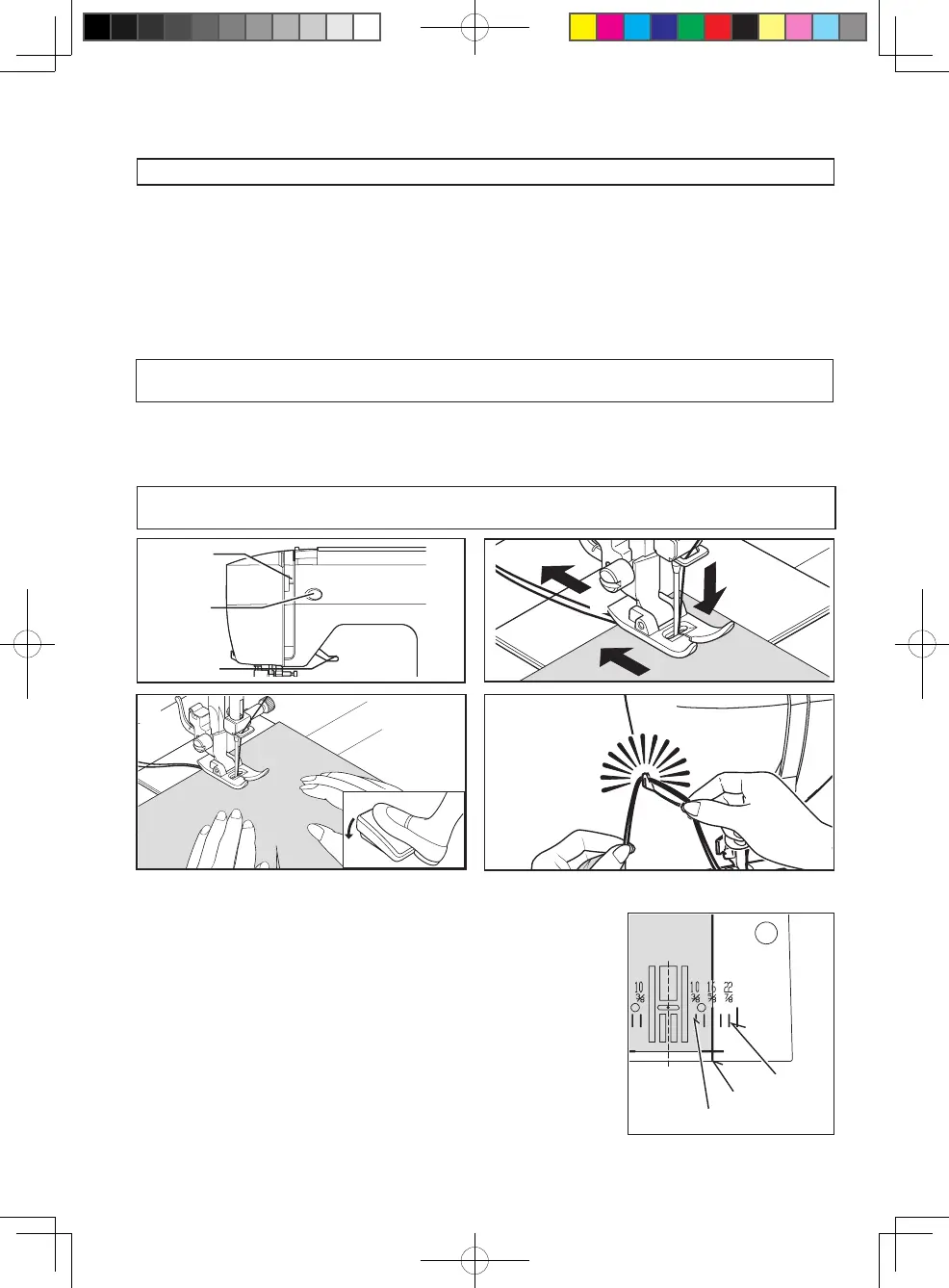 2. Tarik benang dibawah sepatu penindas kearah belakang mesin sampai kira-kira sepanjang 6”