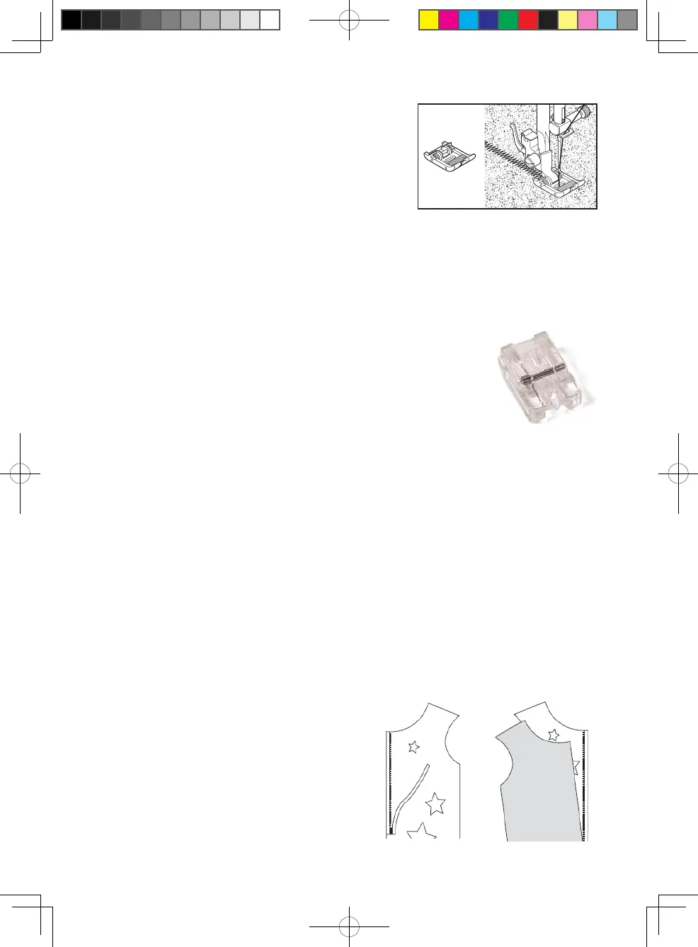 When sewing leather, suede, plastic and velvet, t the roller foot to aid the smooth ow of