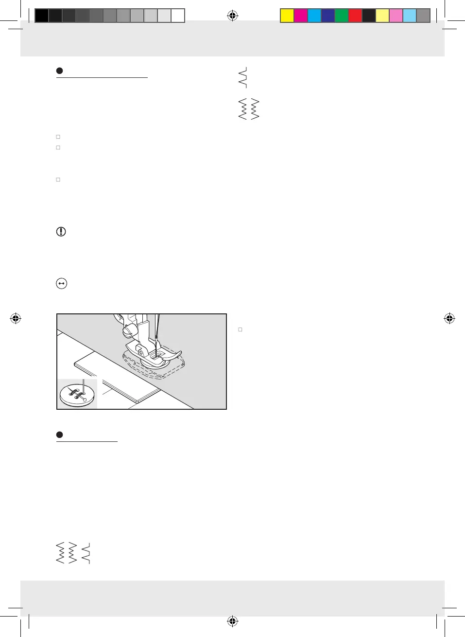 Nähfuß absenken. Handrad drehen und prü-