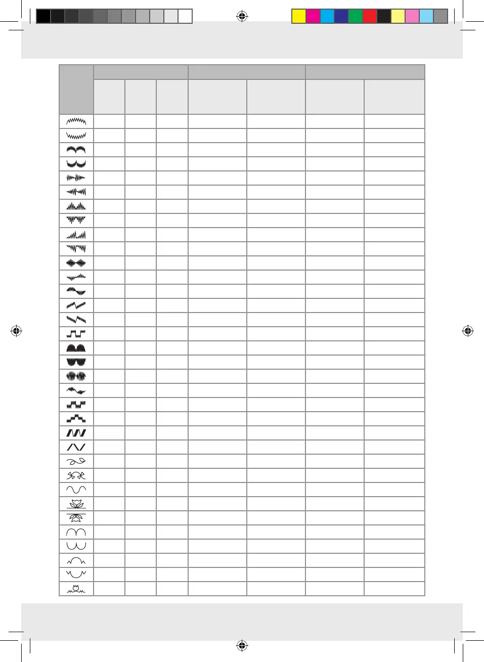 PATTERN NO. STITCH WIDTH STITCH LENGTH