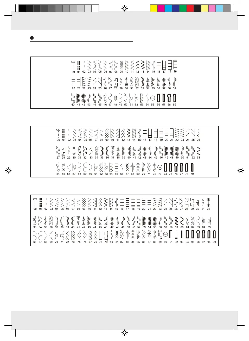 Overview of stitch pattern numbers