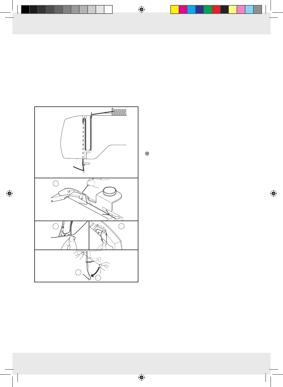 1. Bij omhoog geheven naaivoet trekt u de draad