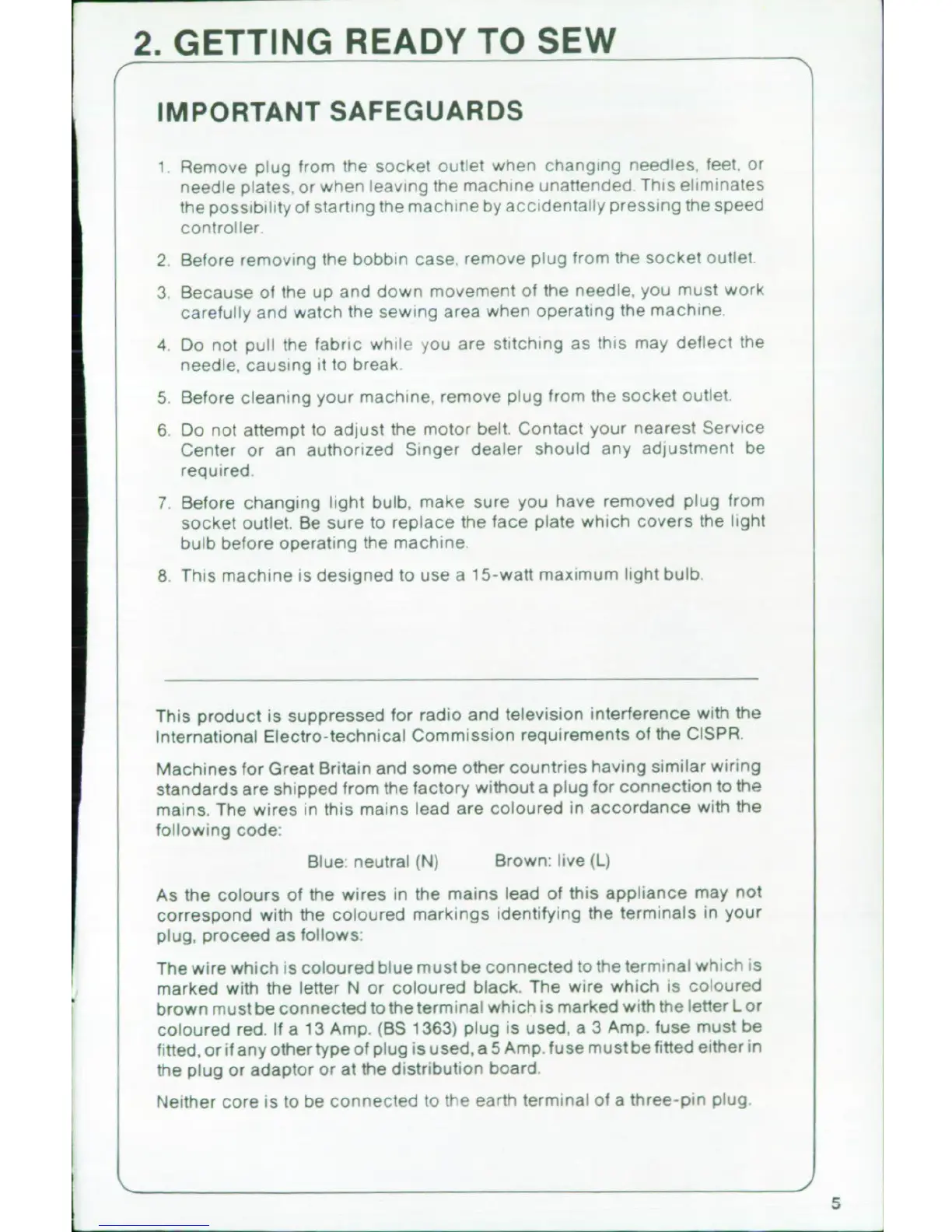Singer 6202; 6212 - Getting Ready to Sew; Important Safeguards