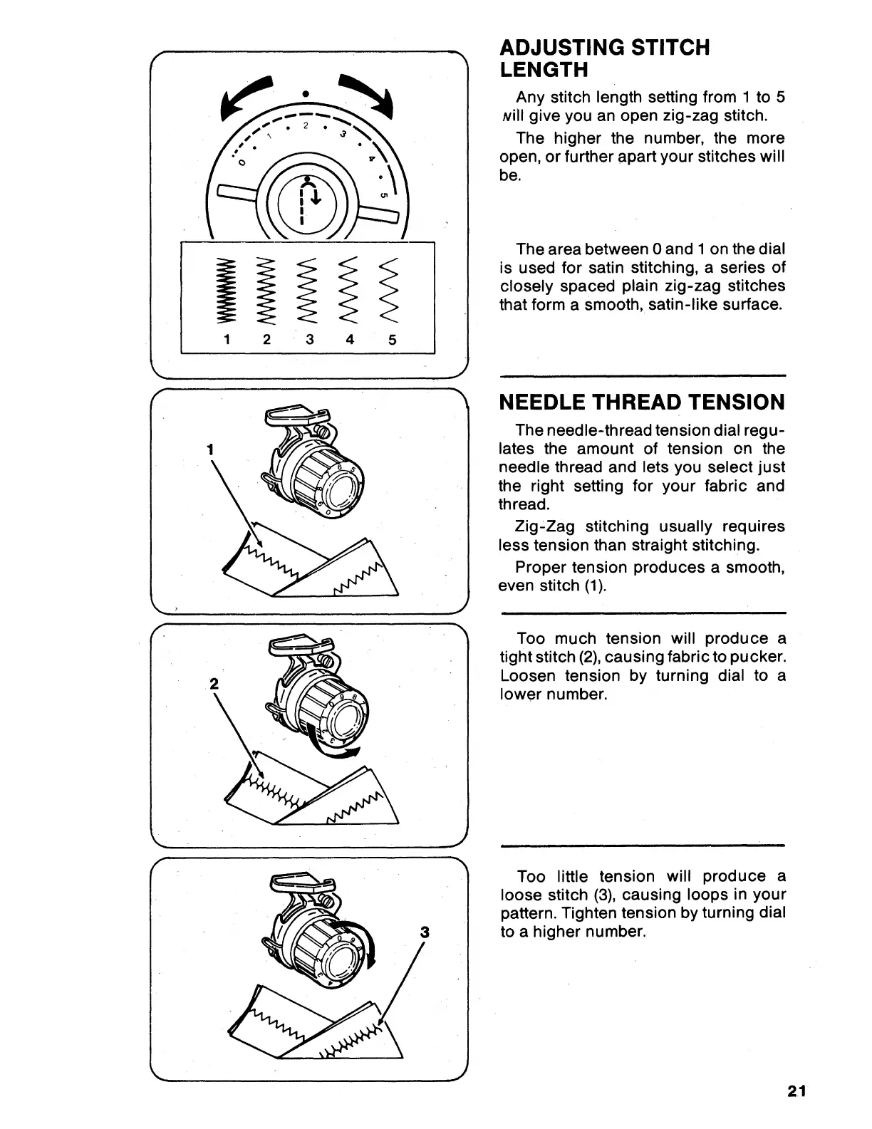 Singer 6202 - Adjusting Zig-Zag Stitch Length; Adjusting Needle Thread Tension for Zig-Zag