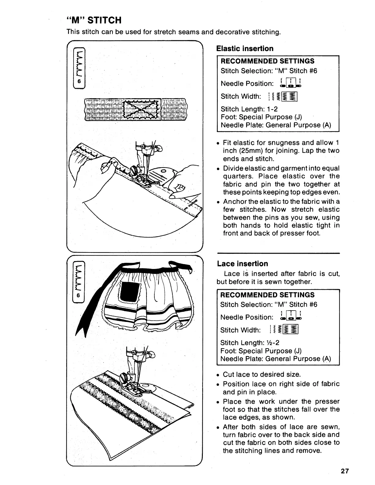 Singer 6202 - M Stitch #6 for Stretch Seams; Elastic Insertion Techniques; Lace Insertion Methods
