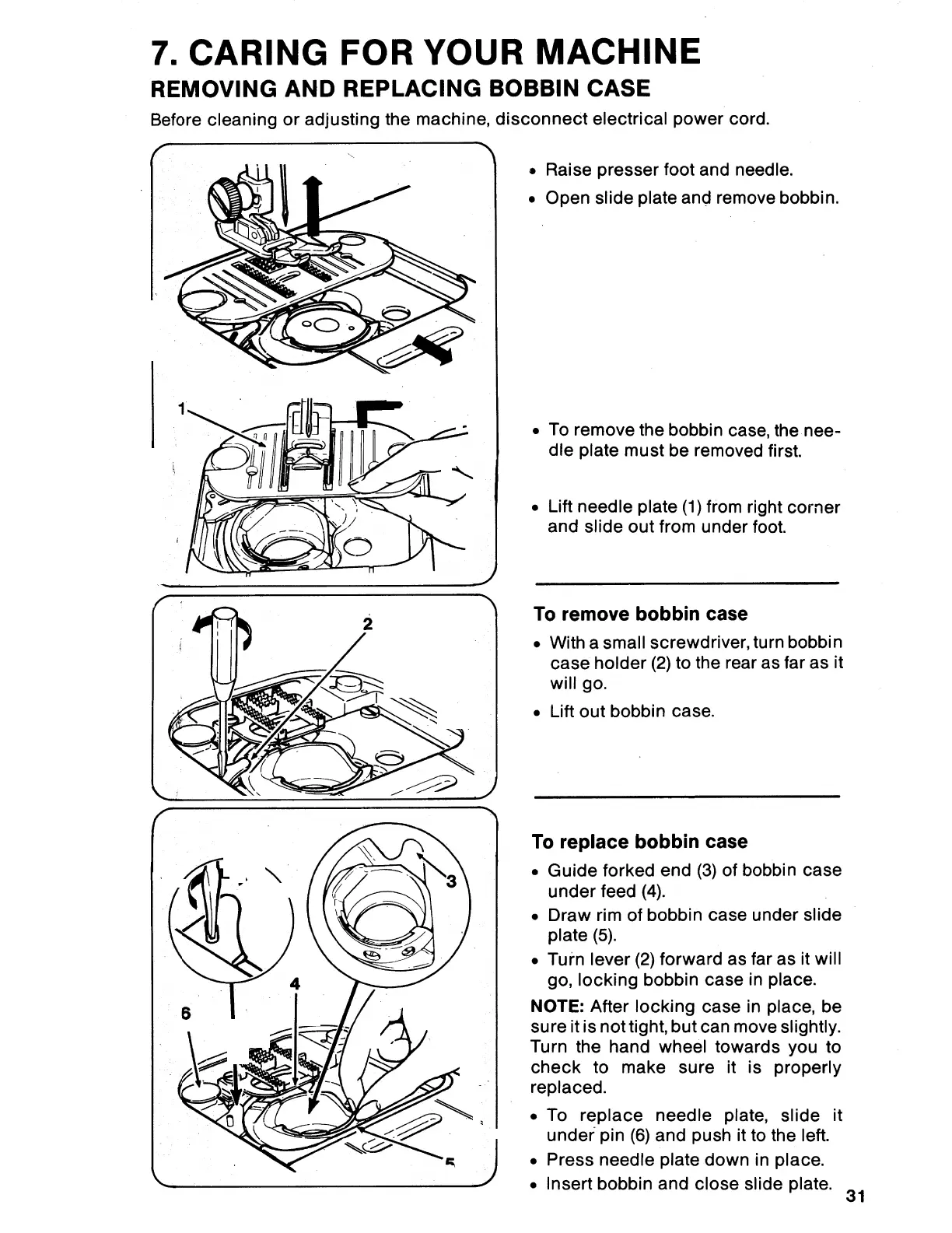 Singer 6202 - Caring for Your Sewing Machine; Removing and Replacing the Bobbin Case