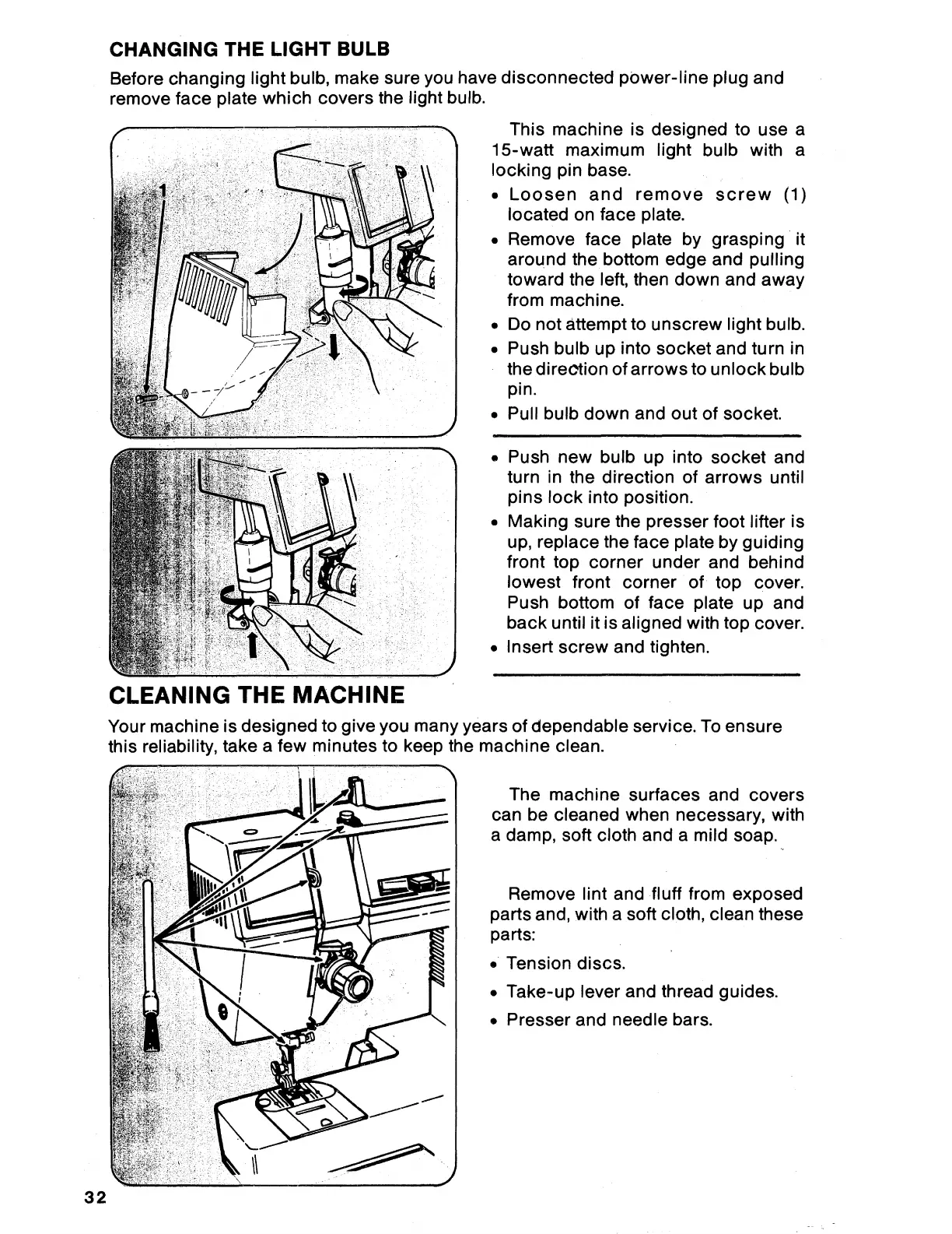 Singer 6202 - Changing the Light Bulb; Cleaning the Sewing Machine