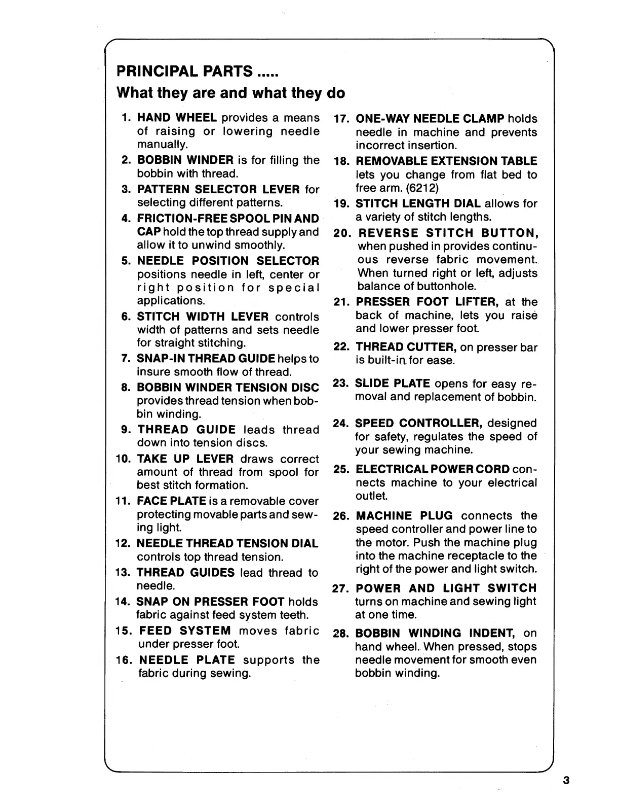 Singer 6202 - Principal Parts of the Sewing Machine