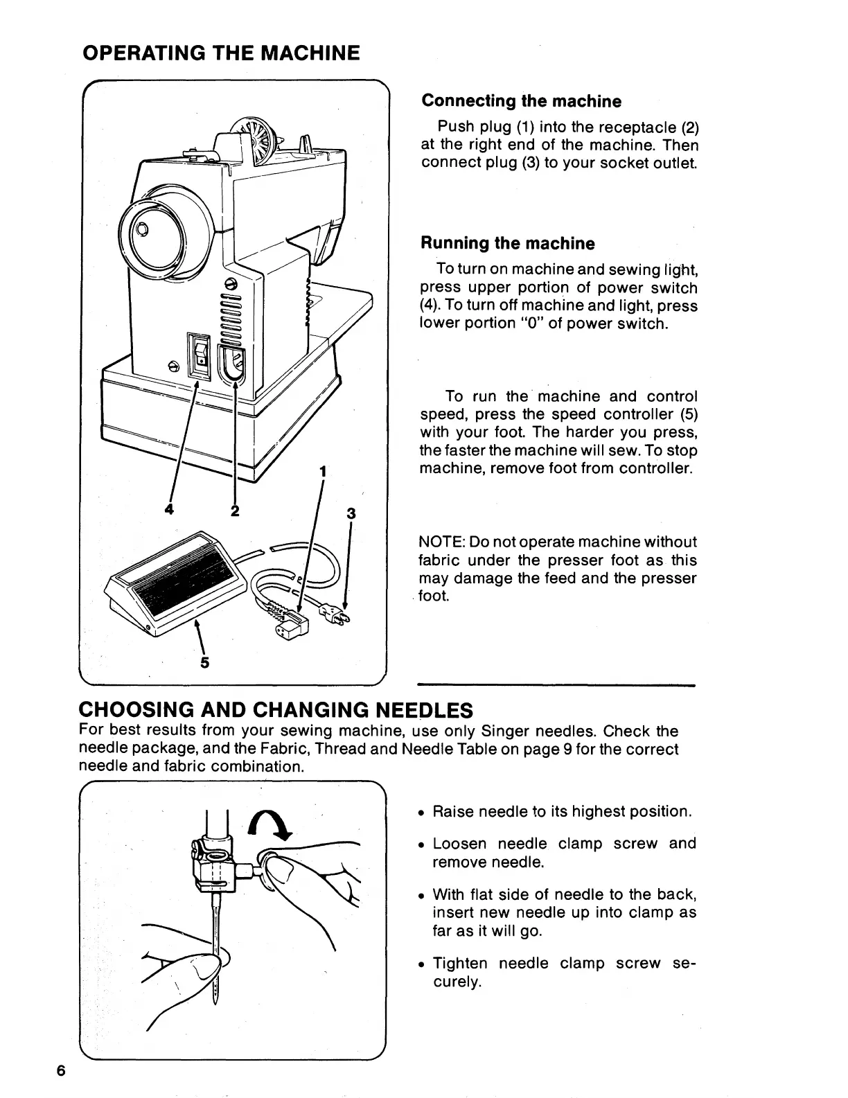 Singer 6202 - Operating the Sewing Machine; Choosing and Changing Needles