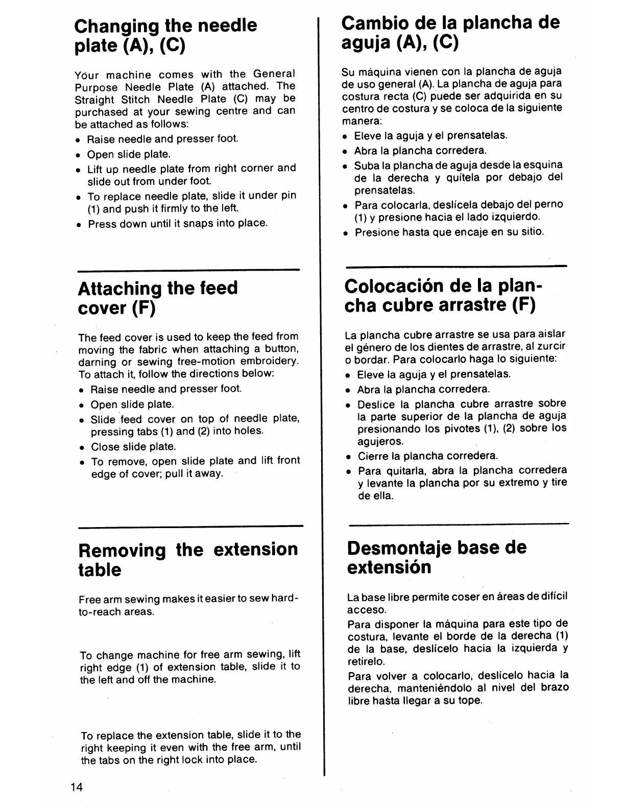 Singer 6212 - Needle Plate and Feed Cover; Changing the Needle Plate; Attaching the Feed Cover; Extension Table Removal